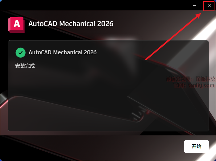 安装完成后,点击右上角的【X】关闭程序。