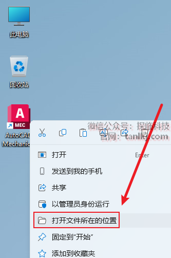 在桌面,右键软件【AutoCAD Mechanical…】,点击【打开文件所在的位置】。