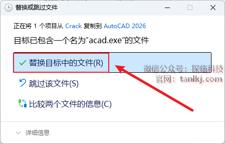 点击【替换目标中的文件】。