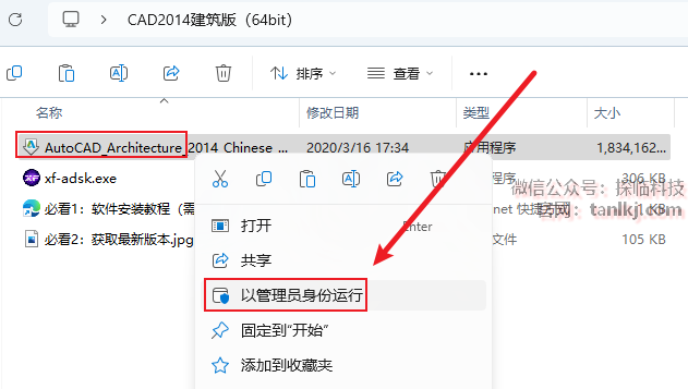 右键程序【AutoCAD_Architecture…】,点击【以管理员身份运行】。