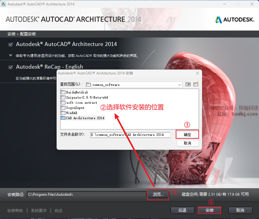 ②选择软件安装的位置,安装路径中不能有任何中文字符;