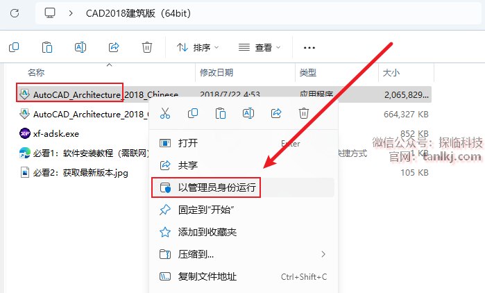 右键程序【AutoCAD_Architecture…】,点击【以管理员身份运行】。