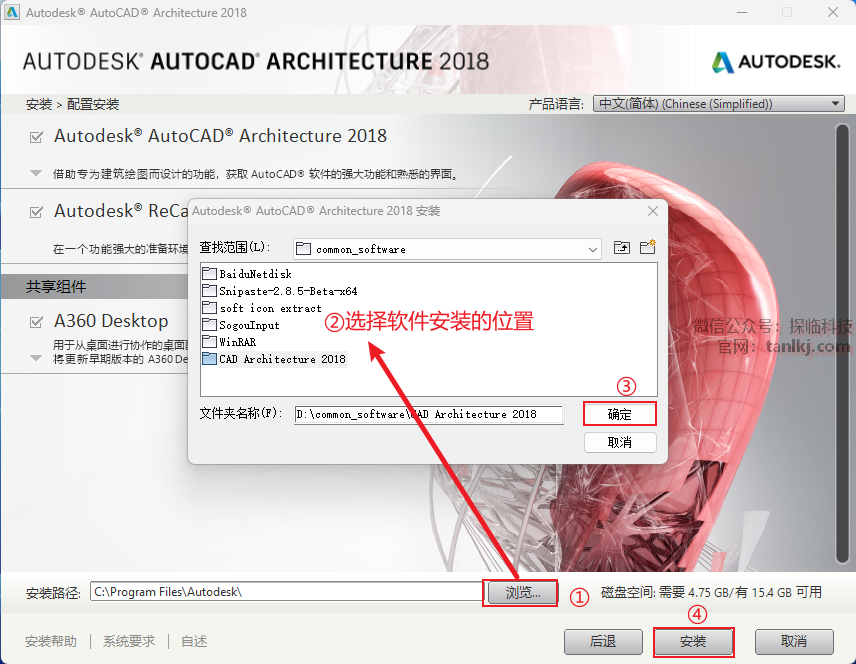 ②选择软件安装的位置,安装路径中不能有任何中文字符;