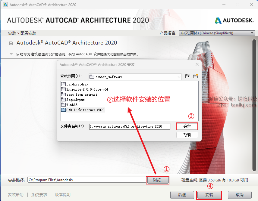 ②选择软件安装的位置,安装路径中不能包含任何中文字符;