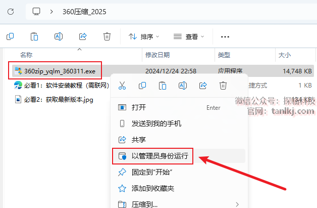 右键程序【360zip_yqlm_360311】,点击【以管理员身份运行】。