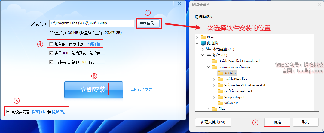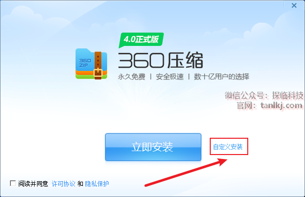 更改软件默认的安装路径(如不需更改,勾选【已阅读并同意…】,然后点击【立即安装】即可)。