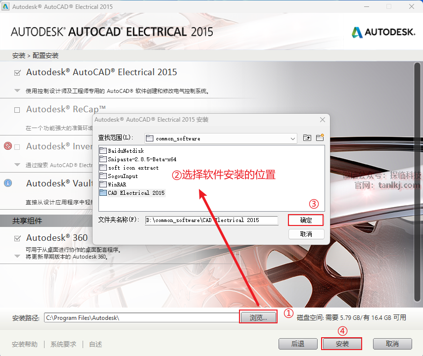 ②选择软件安装的位置,安装路径中不能有任何中文字符;