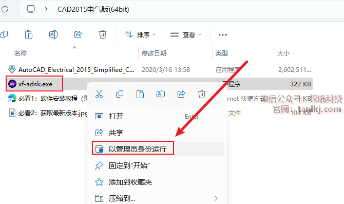 打开之前解压后的文件夹,右键程序【xf-adsk】,点击【以管理员身份运行】。