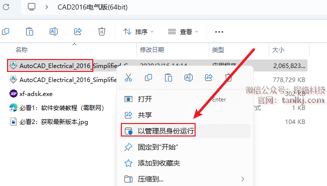 打开解压后的文件夹,右键程序【AutoCAD_Electrical…】,点击【以管理员身份运行】。