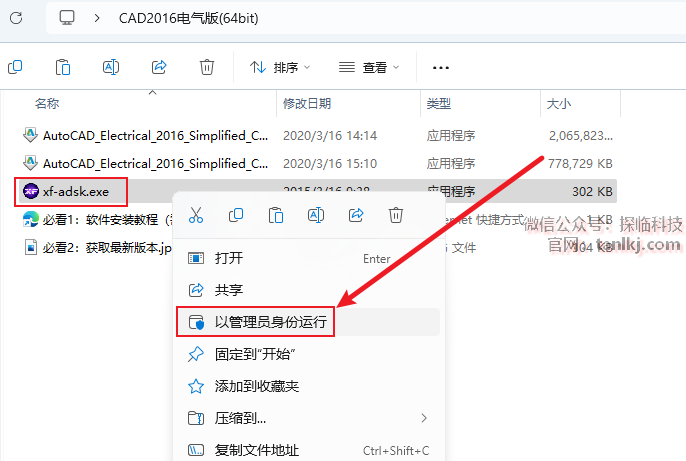 打开之前解压后的文件夹,右键程序【xf-adsk】,点击【以管理员身份运行】。