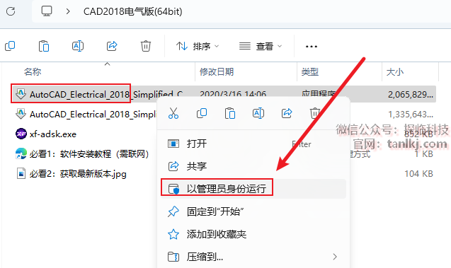 打开解压后的文件夹,右键程序【AutoCAD_Electrical…】,点击【以管理员身份运行】。