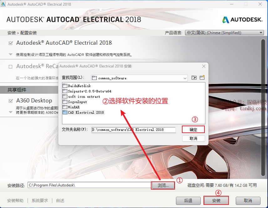 ②选择软件安装的位置,安装路径中不能包含任何中文字符;