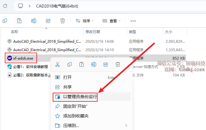 打开之前解压后的文件夹,右键程序【xf-adsk】,点击【以管理员身份运行】。