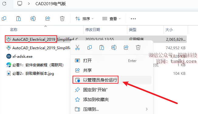 打开解压后的文件夹,右键程序【AutoCAD_Electrical…】,点击【以管理员身份运行】。