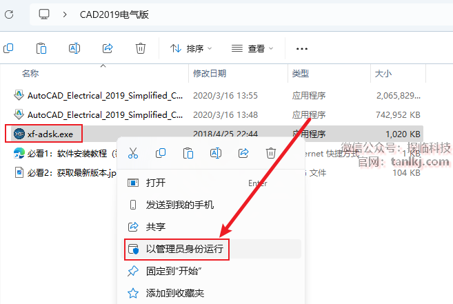 打开之前解压后的文件夹,右键程序【xf-adsk】,点击【以管理员身份运行】。