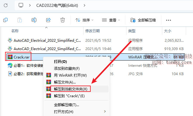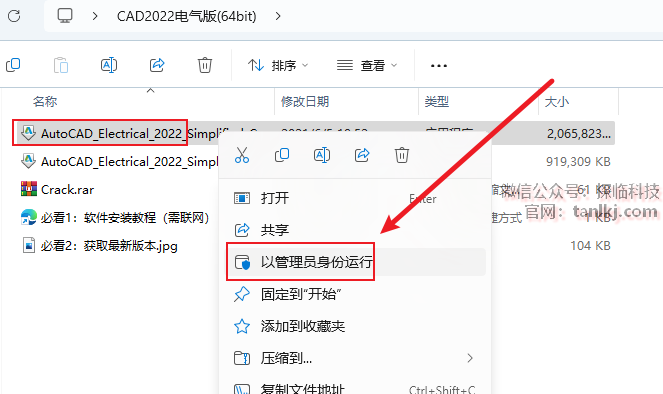 打开解压后的文件夹,右键程序【AutoCAD_Electrical…】,点击【以管理员身份运行】。