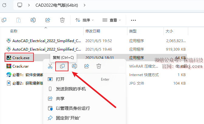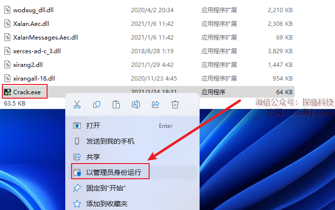 右键刚刚粘贴的文件【Crack】,点击【以管理员身份运行】。