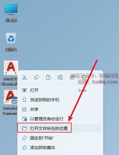 在桌面,右键软件【AutoCAD Electrical…】,点击【打开文件所在的位置】。