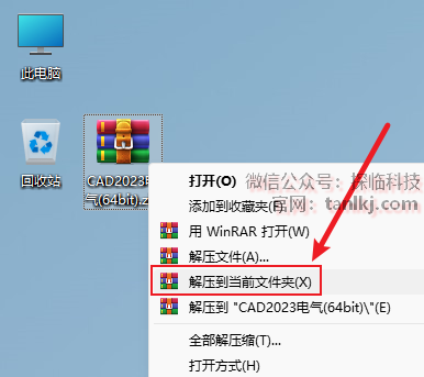 解压下载后的软件包。右键软件包,点击【解压到当前文件夹】(win11系统需先点击【显示更多选项】)。 (未安装解压软件可以点击此处查看:如何安装解压软件?)