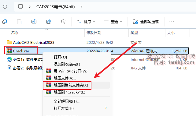 打开解压后的文件夹,双击打开文件夹【AutoCAD Electrical2023】。