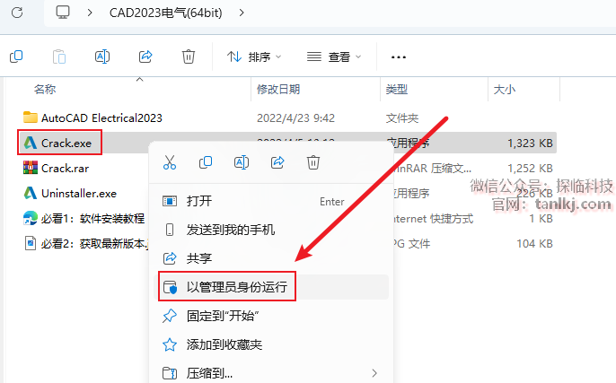 右键解压出来的程序【Crack】,点击【以管理员身份运行】。