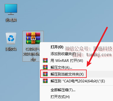 解压下载后的软件包。右键软件包,点击【解压到当前文件夹】(win11系统需先点击【显示更多选项】)。 (未安装解压软件可以点击此处查看:如何安装解压软件?)