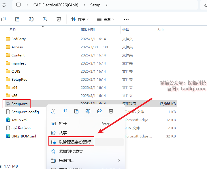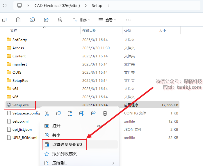 回到【步骤03】中的文件夹中,右键程序【Setup】,点击【以管理员身份运行】。