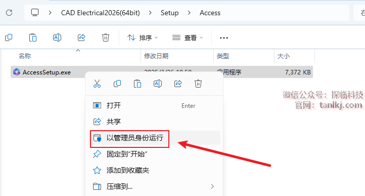 右键程序【AccessSetup】,点击【以管理员身份运行】。