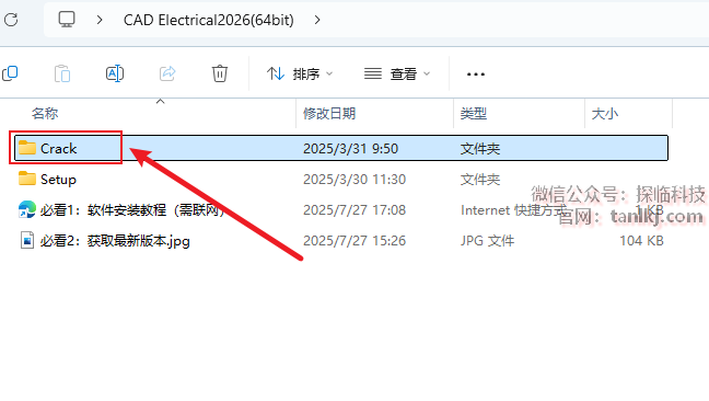 打开之前解压后的文件夹,双击打开文件夹【Crack】。