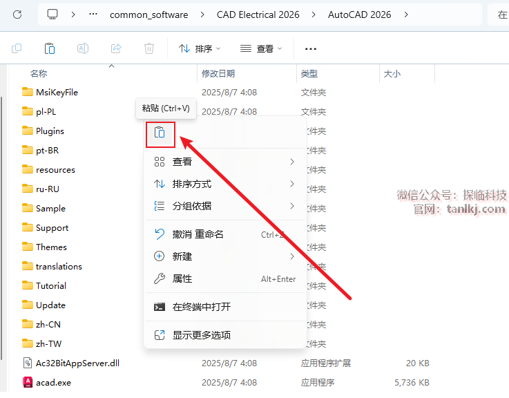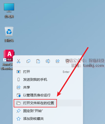 在桌面,右键软件【AutoCAD Electrical…】,点击【打开文件所在的位置】。