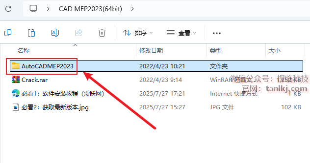 打开解压后的文件夹,双击打开文件夹【AutoCADMEP2023】。