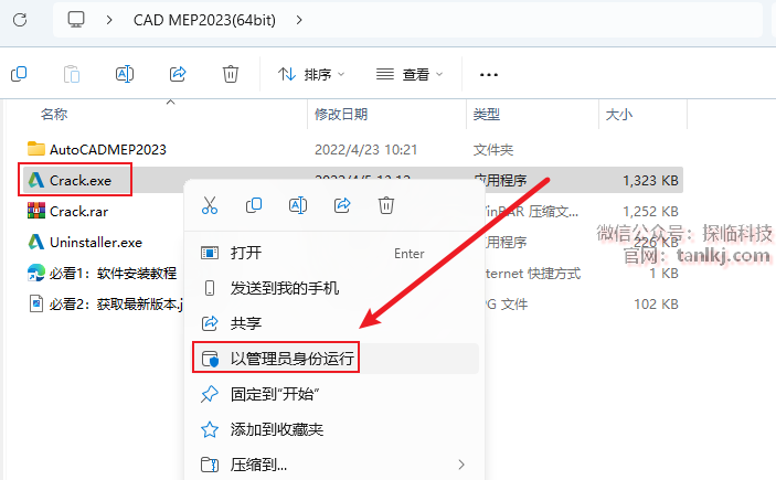右键解压出来的程序【Crack】,点击【以管理员身份运行】。