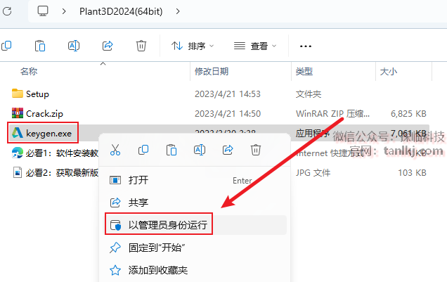 右键解压出来的程序【keygen】,点击【以管理员身份运行】。