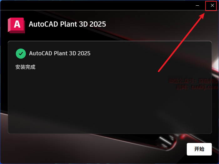 安装完成后,点击右上角的【X】关闭程序。
