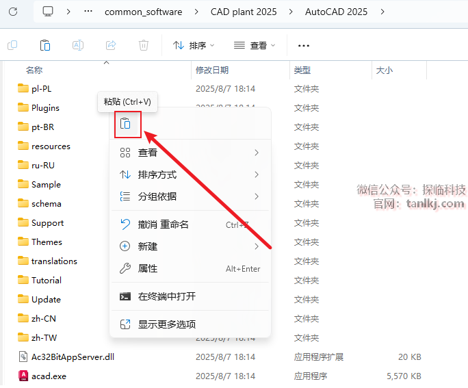 在弹出来的文件夹内,粘贴刚刚复制的文件。