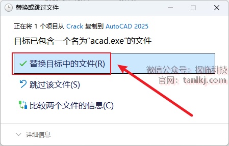 点击【替换目标中的文件】。