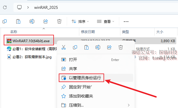 右键程序【WinRAR7.10(64bit)】,点击【以管理员身份运行】。
