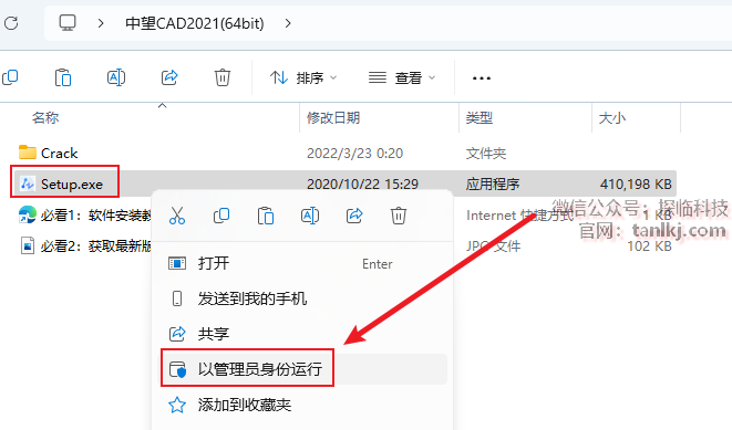 打开解压后的文件夹,右键程序【Setup】,点击【以管理员身份运行】。