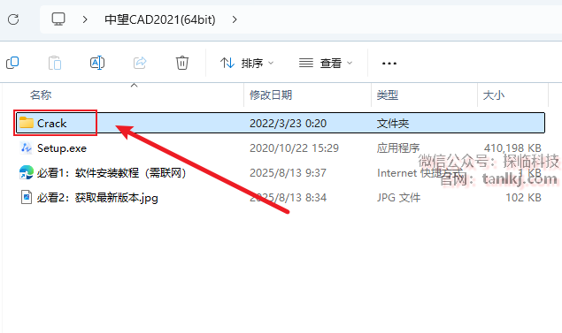 打开之前解压后的文件夹,双击打开文件夹【Crack】。