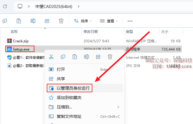 打开解压后的文件夹,右键程序【Setup】,点击【以管理员身份运行】。