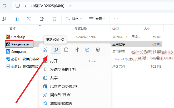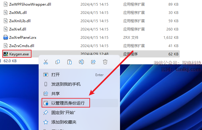 右键刚刚粘贴的文件【Keygen】,点击【以管理员身份运行】。