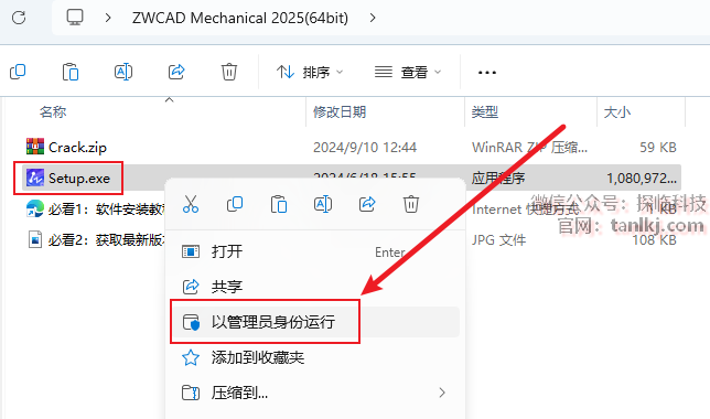 打开解压后的文件夹,右键程序【Setup】,点击【以管理员身份运行】。