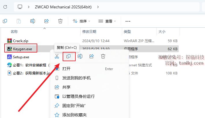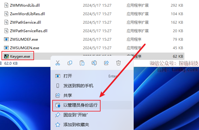 右键刚刚粘贴的文件【Keygen】,点击【以管理员身份运行】。