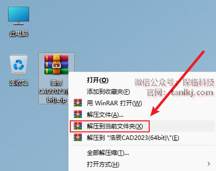 解压下载后的软件包。右键软件包,点击【解压到当前文件夹】(win11系统需先点击【显示更多选项】)。 (未安装解压软件可以点击此处查看:如何安装解压软件?)