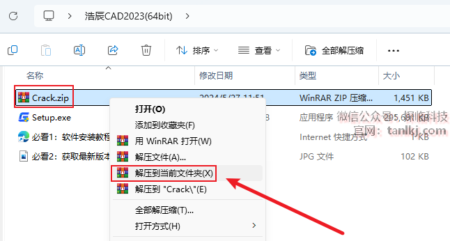 打开之前解压后的文件夹,解压文件【Crack】。