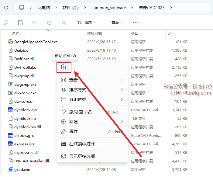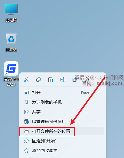 在桌面,右键软件【浩辰CAD2023】,点击【打开文件所在的位置】。