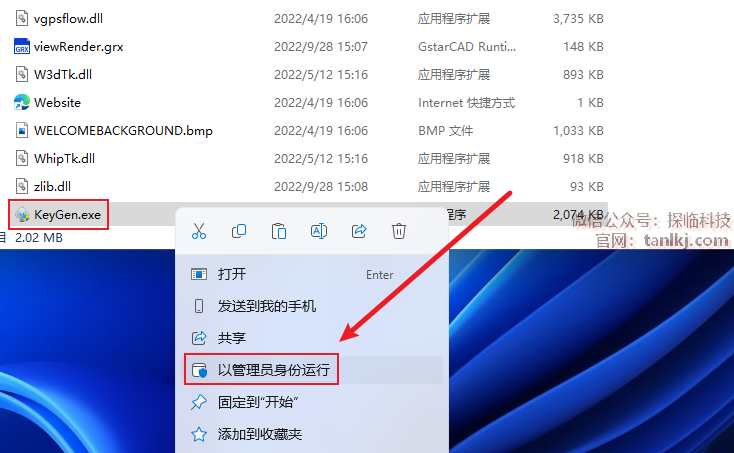 右键刚刚粘贴的文件【Keygen】,点击【以管理员身份运行】。