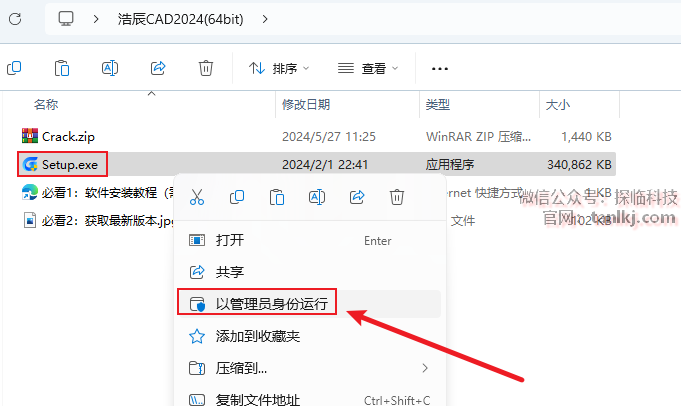 打开解压后的文件夹,右键程序【Setup】,点击【以管理员身份运行】。