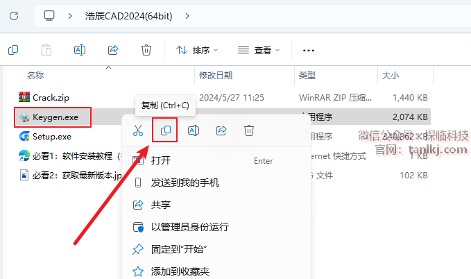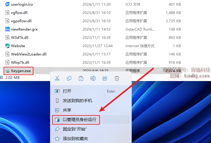 右键刚刚粘贴的文件【Keygen】,点击【以管理员身份运行】。