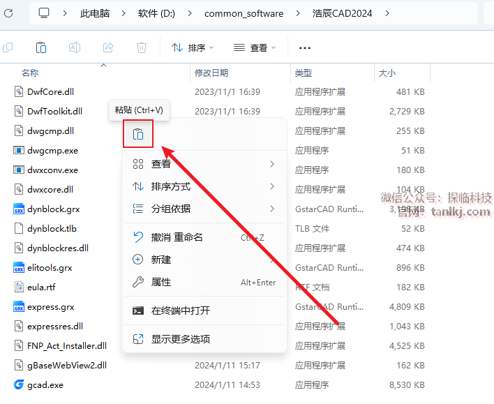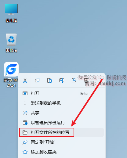 在桌面,右键软件【浩辰CAD2024】,点击【打开文件所在的位置】。